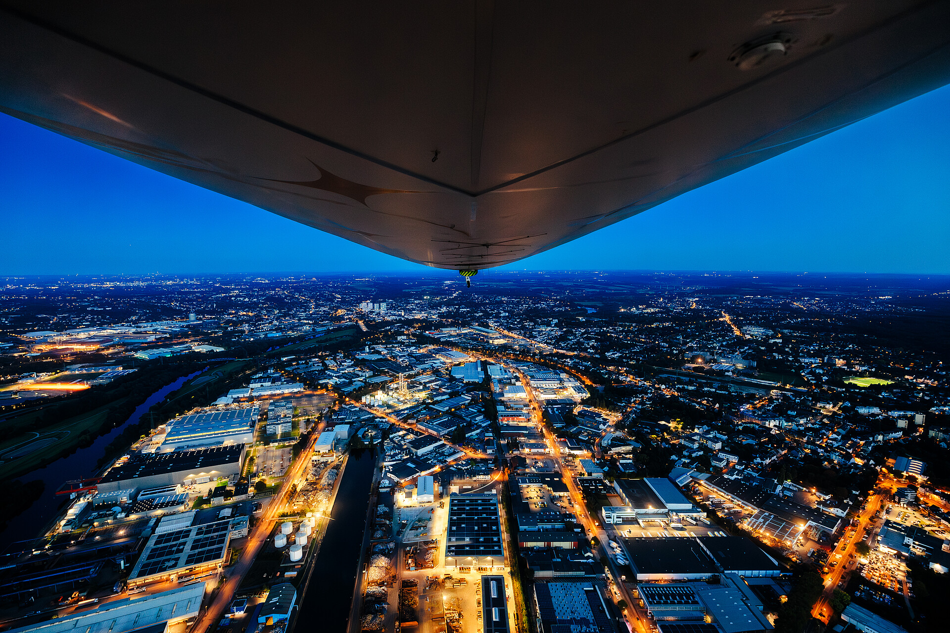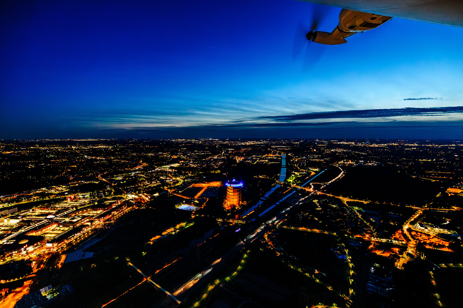 In the light of the setting sun, the Ruhr region’s distinctive atmosphere unfolds. Highlights of your scenic flight include the Duisburg-Nord Landscape Park, the Ruhrort Port - the largest inland port in the world - as well as the Duisburg Harbor with views of the city center and Duisburg Sports Park.
